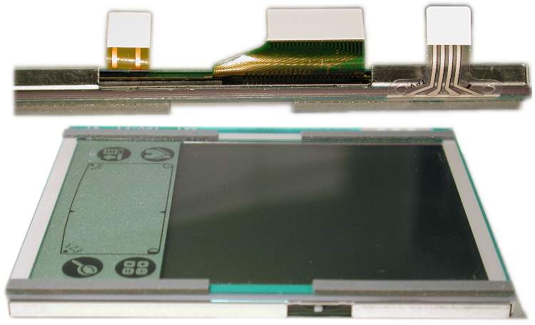 The m100 design is very cost effective. All parts are located on one side of the printed circuit board, which safes assembly costs. All the keys, including the power key, are a special, integrated construction. Little thin, slightly vaulted steel plates are fixed directly on the PCB with an adhesive foil. The counter contacts are integrated on the PCB itself. If the materials are all choosen carefully, such a construction can be a good solution. The feel of the keys is nice. However, the Palm IIIc was the first unit using that kind of keys and there were quite a few complaints about the lifetime. Hopefully the construction in the m100 is more durable, only time will tell. . |